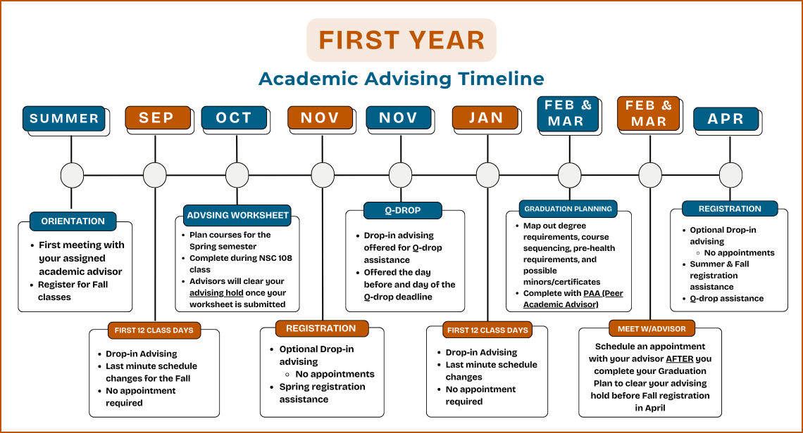 - Academic advising is incorporated into the TIP First-Year seminar (NSC 108) coursework. Students receive weekly academic advising assistance during the class in the Fall.
